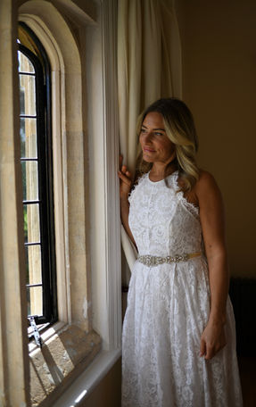 Morning sun floods the bridal suite as Anna gets ready with her bridesmaids Sophie and Shanika. There's a buzz of excitement - hairdryers going, dresses swishing, laughter bouncing off the old stone walls.